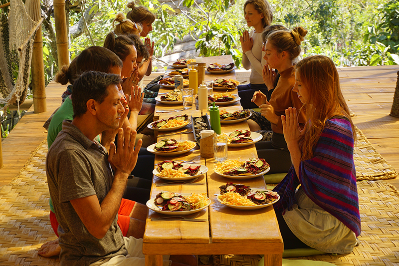 Your days begin with pranayama (breathing practices), meditation, and yoga asana. This practice, which lasts a total of 2.5 hours, is the perfect way to begin your day from a place of bliss. Practice is followed by a yummy and nutritious breakfast featuring a variety of superfoods. After eating, retreat guests have a break, providing an opportunity to relax or explore. We are happy to help arrange activities such as stand up paddle boarding, massages, market visits, Volcano hikes and more.