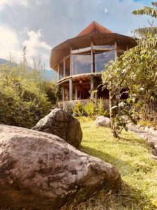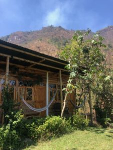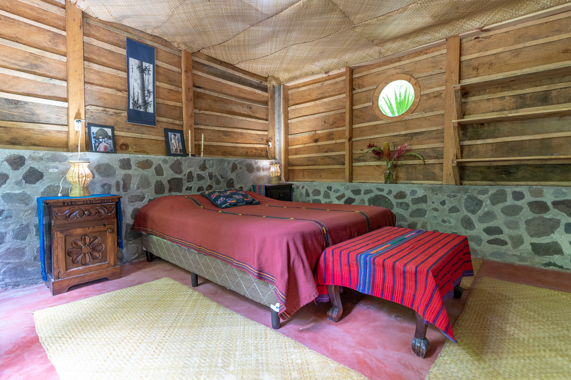 This beautiful practice space stands on stilts next to the Tzununa River with full length windows and sliding glass doors. The sounds of the river permeate the space, which features jaw-dropping views of Lake Atitlan and its surrounding volcanoes and mountains. Inside, the yoga shala features high, insulated ceilings held up by bamboo pillars and a sprawling cypress floating floor. The cane, Cyprus, pine, and stones used in the construction are locally sourced and built with care by community workers. Permaculture principles are followed to ecologically enhance the construction quality, garden, and design functionality of the center.